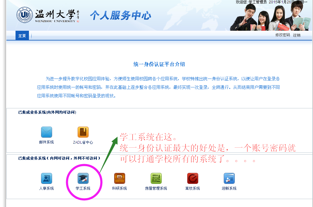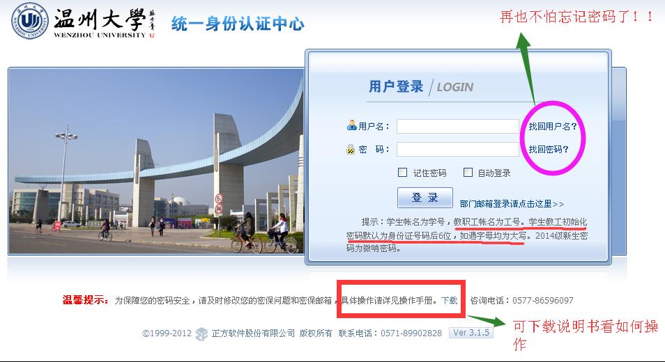 打开 http://rz.wzu.edu.cn,登录统一身份认证系统。