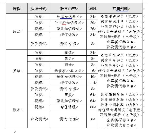 暑期课程培训采用现场授课的教学形式,授课课程包括政治、英语、数学(详见附件1)。