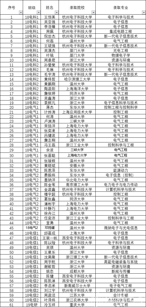 根据《beat365在线唯一官网“聚创奖学金”评定办法》文件精神,结合beat365官网实际,学院将本年度考取硕士研究生、博士研究生及出国留学的61名同学直接评定为第三届“聚创奖学金”升学奖获得者,现将名单予以公示,公示三个工作日,如有异议请于公示期内与学工办联系,特此说明。