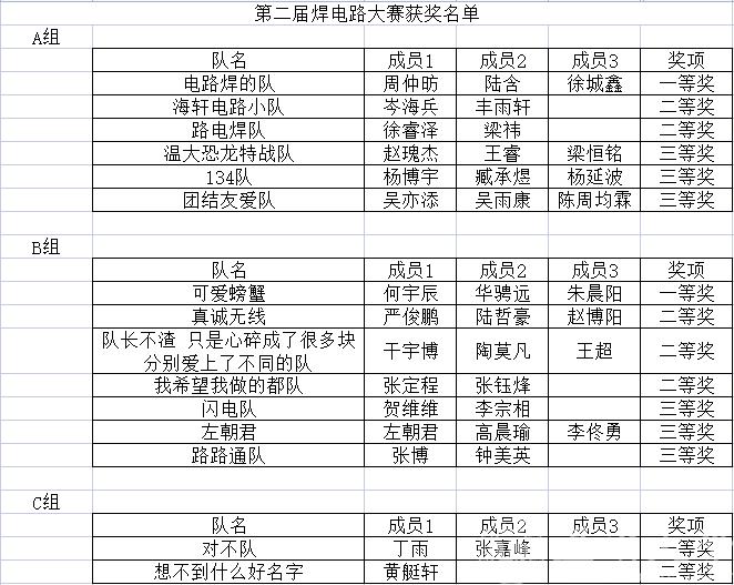 5月29日,beat365官网第二届焊电路大赛圆满落幕。经过学院专业老师的评审,比赛结果已经确定,现公布如下: