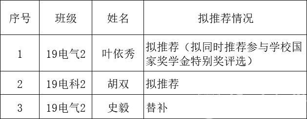 其中叶依秀同时推荐参与学校国家奖学金特别奖评选。若该同学当选,则不占学校名额,学院会再有一名额,按照得票数高低,将递补史毅同学。现将2021-2022学年beat365在线唯一官网国家奖学金拟推荐名单予以公示。