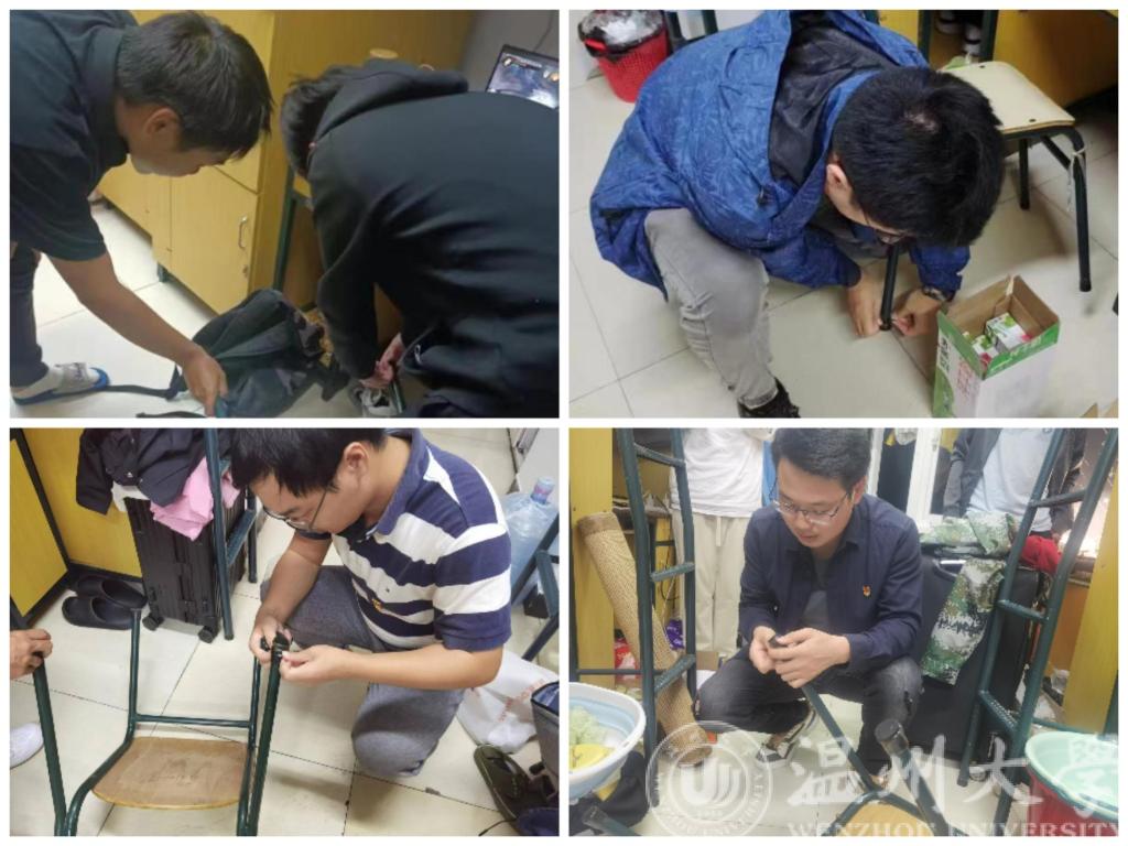 为深入学习贯彻习近平总书记关于主题教育系列重要讲话和在浙江考察时的重要讲话精神,推动学习贯彻习近平新时代中国特色社会主义思想主题教育走实走深,日前,beat365在线唯一官网党委先后组织100余名师生党员到150余间学生宿舍开展“我为群众办实事之‘给椅凳穿新衣”实践活动,进行“暖心敲门服务”,让学生真切感受到主题教育带来的新变化、新实惠。