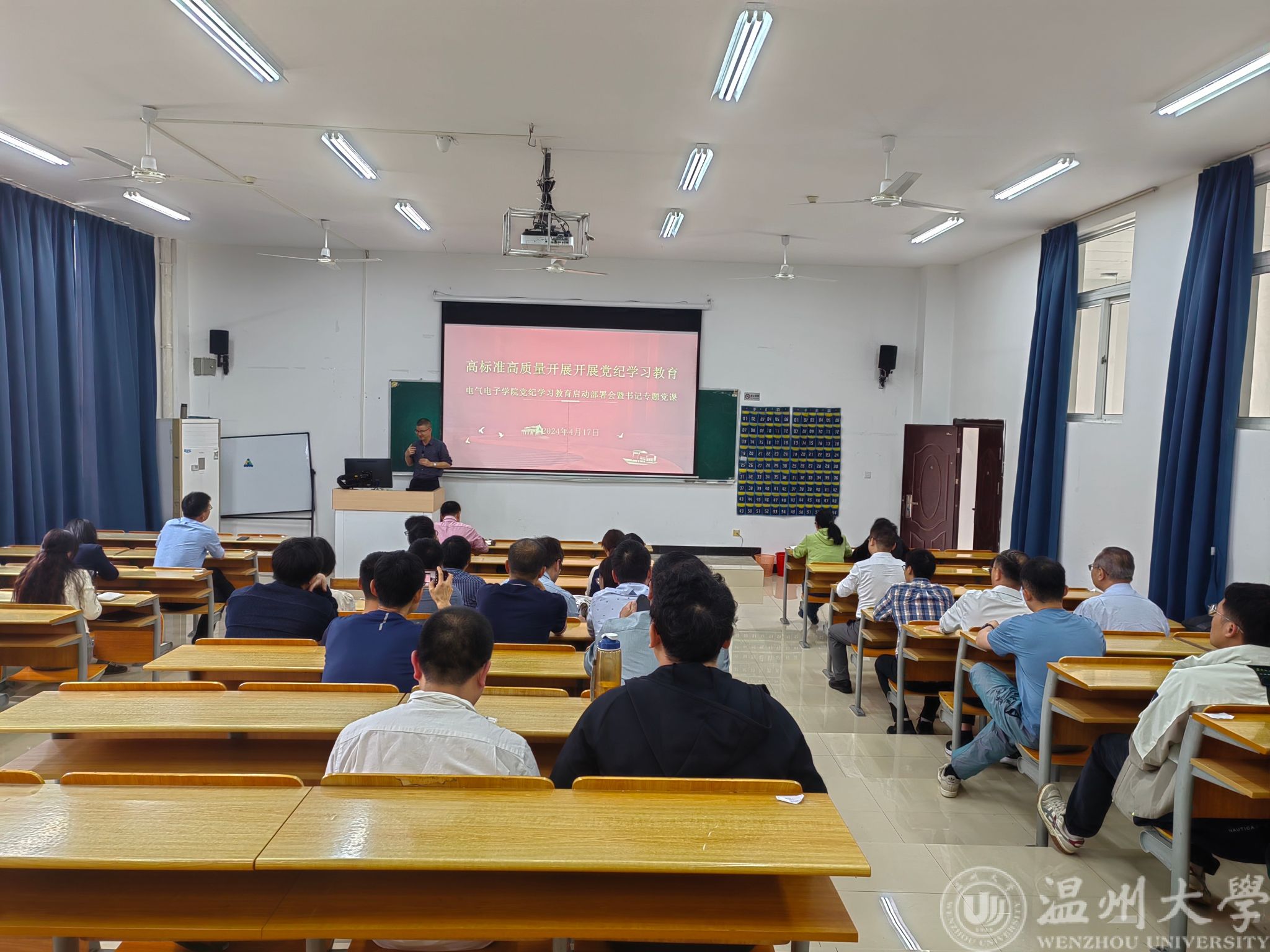 4月17日下午,beat365官网党委在南1B402大教室召开党纪学习教育启动部署会。学院领导班子、全体教师党员了参加会议。学院党委书记李方强主持会议并作专题党课。