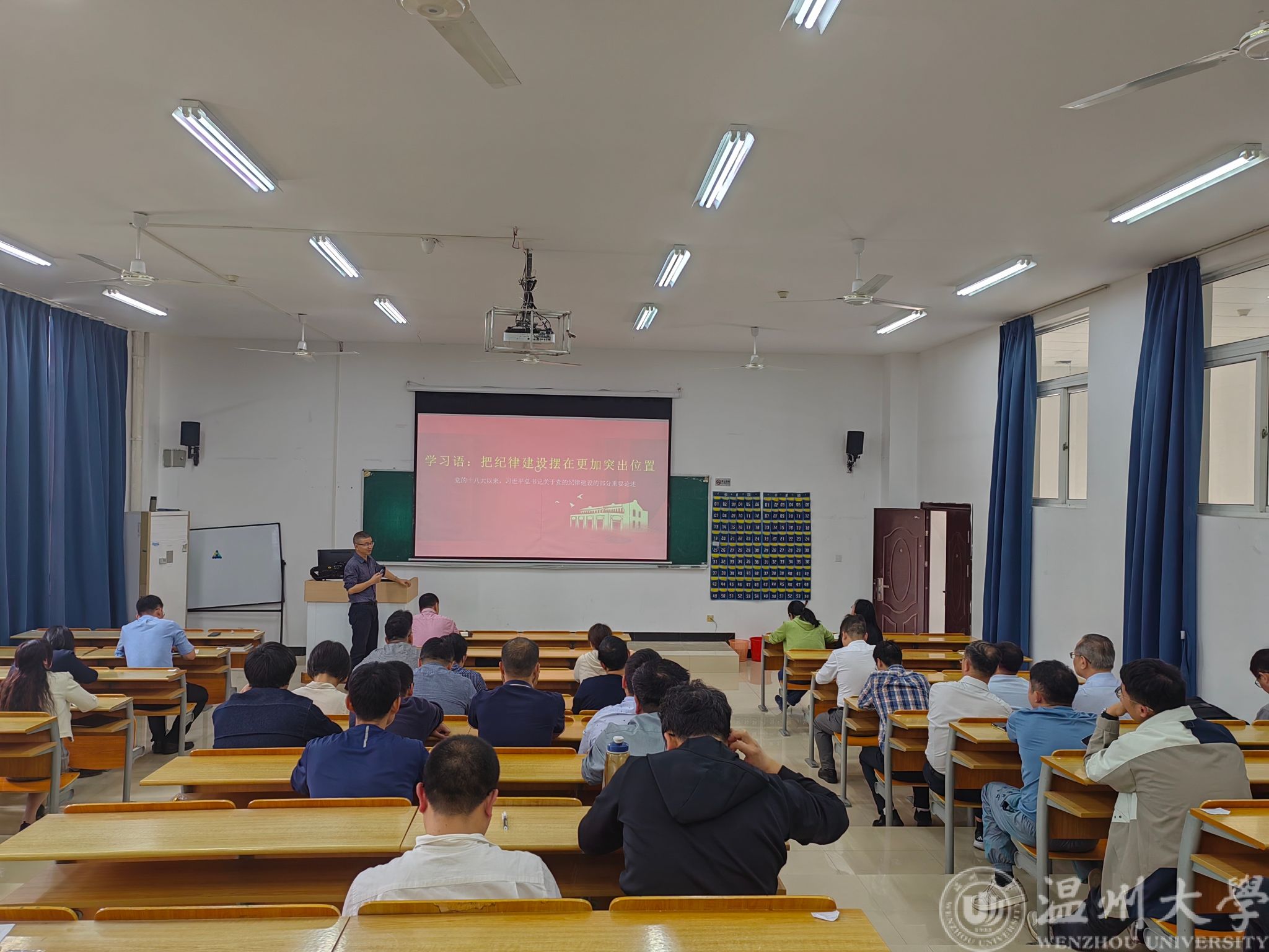 随后,学院党委书记李方强以《学习语:把纪律建设摆在更加突出位置》为题,讲授党纪学习教育主题。他围绕“全面加强党的纪律建设”主题,分“纪律是管党治党的‘戒尺’”“扎紧党纪党规的笼子”“在党的纪律规矩中,政治纪律和政治规矩是最根本、最重要的”三个主题,带领与会同志们一起学习了党的十八大以来,习近平总书记关于党的纪律建设的部分重要论述。