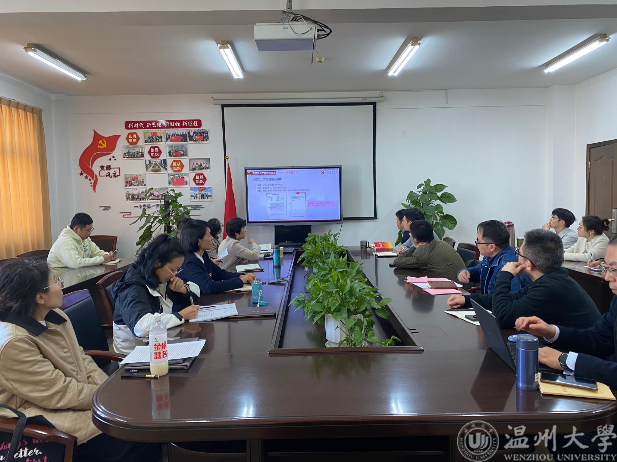 培训会上,学校党委组织部雷霞老师作为省级“四强”组织员,结合《中国共产党发展党员工作细则》和学校最新要求,以《发展党员全周期流程规范与操作要点解读》为题,围绕申请、培养、考察、审批、转正等五个阶段25个步骤进行了“清单式”的全链条梳理与讲解,并着重强调了政治审查、公示、票决、材料归档等关键环节的规范要求与风险防范。现场同步展示了可视化的发展党员工作流程图,为基层党支部提供了标准化指引,确保基层支部“一看就会、一填就对”。随后,来自温州理工学院电子与电气工程学院的党委委员、“双带头人”教师党支部书记、浙江省“四强”组织员刘莹博士作全国样板党支部创建工作经验分享。刘莹博士从支部建设、党建科研融合、党员作用发挥等方面,系统介绍了其所在支部如何成功入选全国、省级党建样板支部的实践经验。她认为,样板支部的创建关键在于“对标对表、突出特色、强化融合”,并鼓励各支部结合自身实际,探索“党建+学科”“党建+科研”“党建+服务”等多元路径,推动党建工作提质增效。