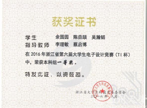 获得电赛省一等奖的3位同学