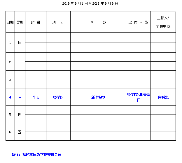 学院第1周行事历